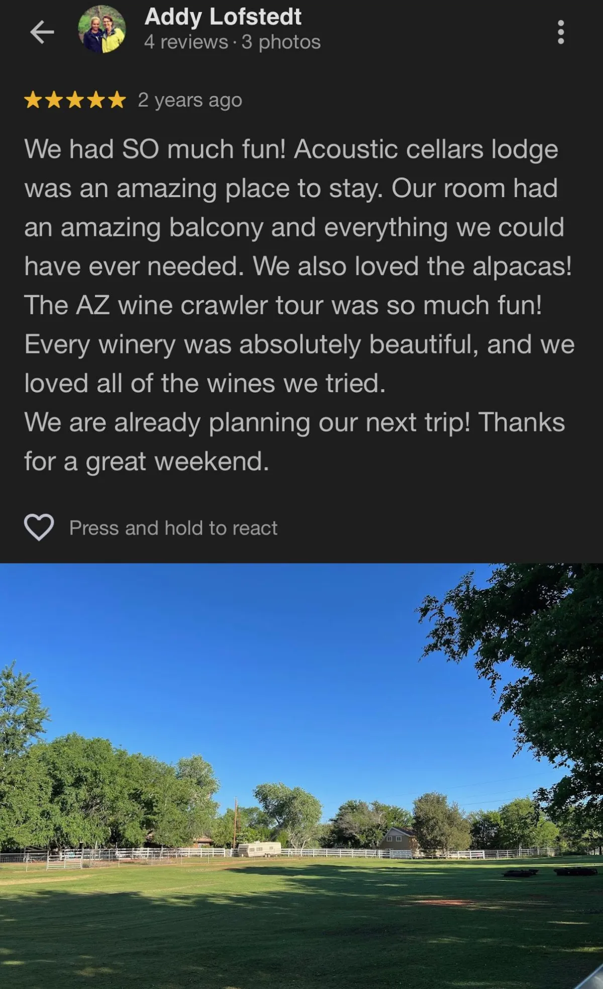 "I've done tours in Napa and Paso Robles, and honestly this had the same quality but with a warmer, more intimate feel. The Verde Valley scenery, the charming hosts, and the wines were incredible. AZ Wine Crawl made us proud to call Arizona wine country home."